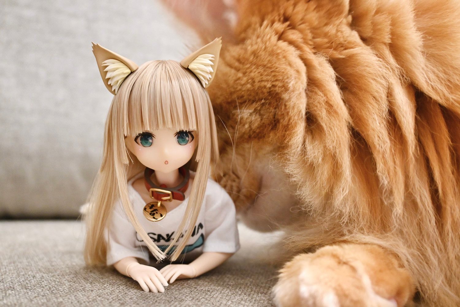 1/6 Kinako 娃娃到了我家,于是我和真正的黄豆粉拍了一张照片☺️