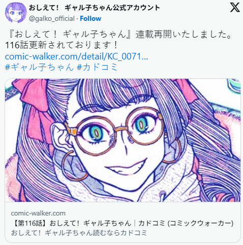 此次新章节上线后,X平台迅速涌入粉丝留言,如“没想到辣妹纸还能回归!”“连载重启太开心了!”等。