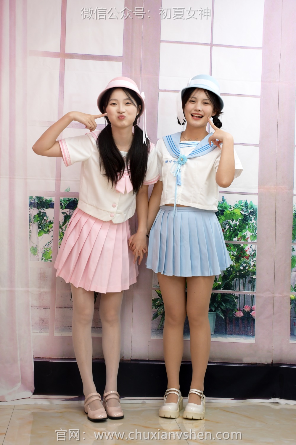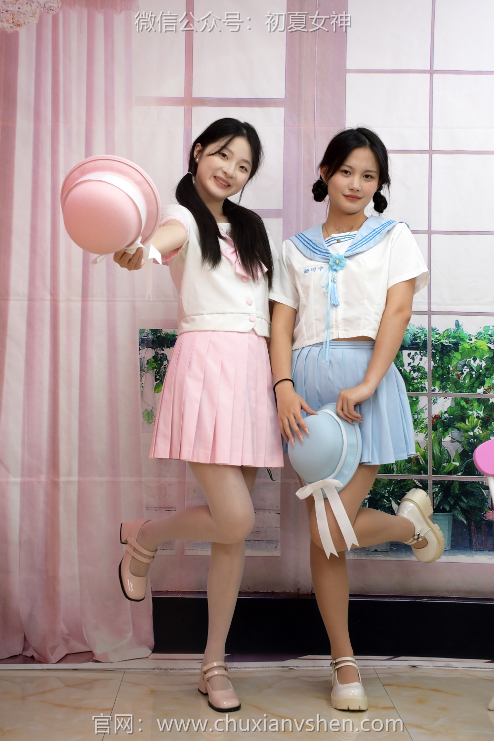 我们最新来了几顶鲜艳的帽子。不得对应着它们的颜色配一下啦?深色的暂时就先不展示了。我们今天主打浅色的吧,粉色毫无疑问是女生最爱啦。那么剩余就是浅蓝色了,幺幺妹妹来驾驭吧。这款帽子除了搭配水手服的花,其他还适合什么服装呢?JK类行不行?找机会可以试试。