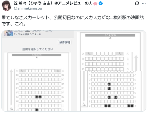 知名动画导演细田守执导并编剧的最新电影《无尽的斯嘉丽》近日在日本上映。然而,由于不少观众对其编剧能力持保留态度,加之该片9月在威尼斯影展首映时反响平平,影片上映后在日本社交平台上遭遇大量负面评价,甚至出现影院空座率极高的现象。