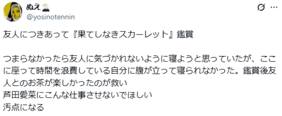 自上映首日起,日本社交媒体上关于该片的评论几乎难见好评。有观众直言影片“难以置信的无聊”,称其为“年度最烂电影”,并形容观影过程“如同得了流感做噩梦一般煎熬”。还有观众表示,片中一段莫名其妙的歌舞表演令人“头痛欲裂,彻底绝望”,甚至呼吁他人“快逃”。