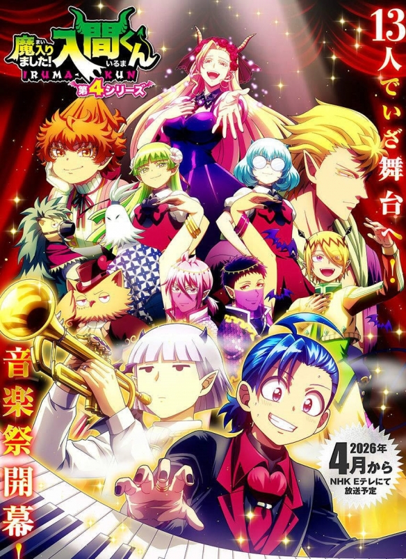 电视动画《入间君》第四季正式确定将于2026年4月在NHK E-TV播出。官方近日发布了本季的主视觉图与预告PV,揭晓了新学年的核心挑战——“音乐祭”。