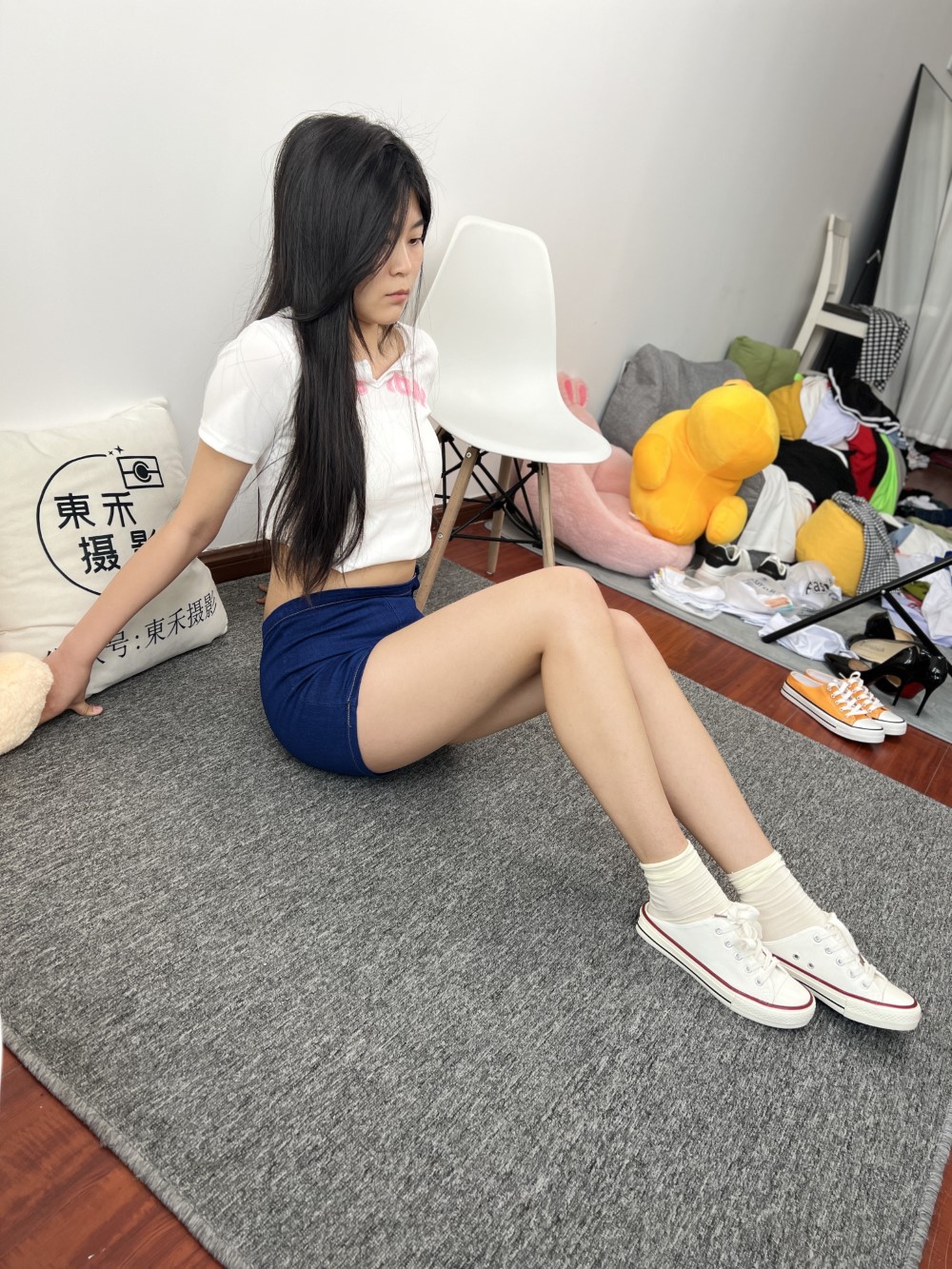 主题内容:牛仔短裤、棉袜、帆布鞋