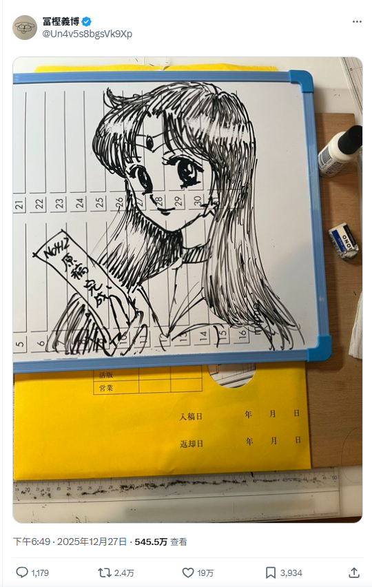 这张庆祝完稿的插图很快就成为网友关注焦点,因为富坚义博在白板上绘制的角色,正是经典漫画《美少女战士》中的“水手火星”。由于富坚的妻子就是《美少女战士》的原作者武内直子,这张亲笔绘图被广大网友戏称为高调“放闪”,幽默的展现了这对漫画界神仙眷侣的好感情。
