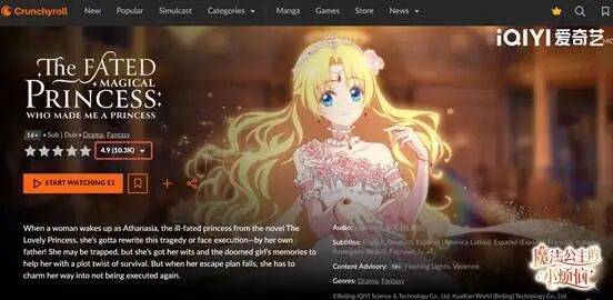 《魔法公主的小烦恼》在国内引发热议的同时,也在海外市场好评如潮。作品通过与国际头部平台的合作,实现了在海外动漫市场的同步发行,与《鬼灭之刃》《药屋少女的呢喃》等热门动画同台竞技,并凭借其突破性的故事内核与精良制作赢得海外观众认可。在Crunchyroll平台上线仅2天,第一集便拿下近万点赞量,实现了4.9分的优秀成绩,海外网友用行动表达了对这部国产动画的喜爱,目前第一集已有近万点赞。