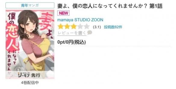 近日,由AI参与生成的作品《妻よ、僕の恋人になってくれませんか?》在日本主流电子漫画平台Comic C’moA的青年漫画榜单中升至首位,引发业内对创作未来的广泛关注。该作由作者mamaya署名,STUDIO ZOON出版,于2025年12月底分四卷发行,以一对中年夫妻重新点燃感情为主线。