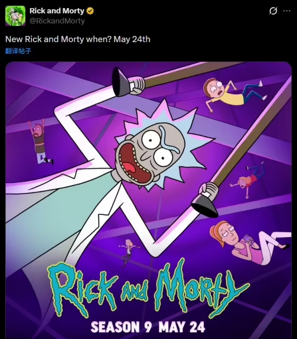 科幻动画《瑞克和莫蒂》官方于3月11日宣布,第九季将于5月24日正式开播。